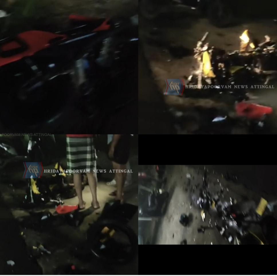 ആറ്റിങ്ങൽ: ആലംകോട് അവിക്സിന് സമീപം ഇന്നലെ രാത്രി 12 മണിക്ക് ബൈക്കുകൾ കൂട്ടിയിടിച്ച് നടയറ മുസ്ലിം ജമാഅത്തിന് സമീപം താമസിക്കുന്ന അഹമ്മദ് (27) മരണപ്പെട്ടു. ആലംകോട് സഹറൽ മന്തി റസ്റ്റോറന്റിലെ സ്റ്റാഫുകൾ സഞ്ചരിച്ചിരുന്ന ബൈക്കും അഹമ്മദ് സഞ്ചരിച്ച ബൈക്കും തമ്മിലാണ് കൂട്ടിയിടിച്ചത്. മലപ്പുറം സ്വദേശി ശ്രീഹരി (22),