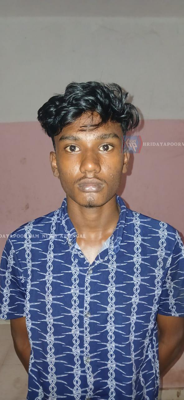 ആറ്റിങ്ങൽ ചാത്തൻപാറ ഭാഗത്ത് ജോലി കഴിഞ്ഞ് വീട്ടിലേക്ക് മടങ്ങുന്ന വഴിയിൽ വെച്ച് യുവതിയെ ഉപദ്രവിക്കാൻ ശ്രമിച്ച കേസിലെ പ്രതിയായ ആലംകോട് തെഞ്ചേരിക്കോണം ഞാറവിള വീട്ടിൽ അസ്ഹറുദ്ദീനെയാണ് (19) ആറ്റിങ്ങൽ പോലീസ് അറസ്റ്റ് ചെയ്തത്.