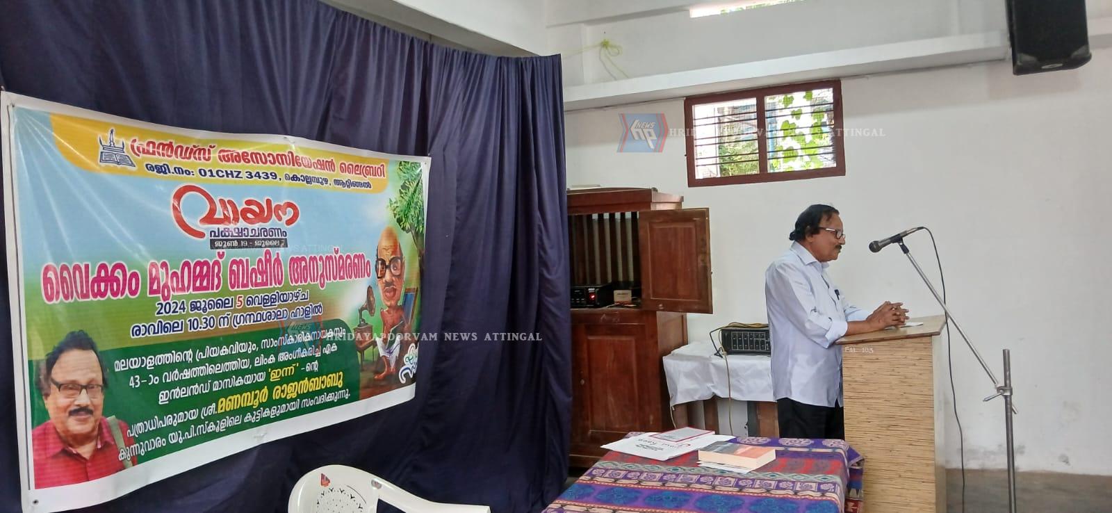 ഫ്രണ്ട്സ് ലൈബ്രറിയിൽ വായനാപക്ഷാചരണവും ബഷീർ അനുസ്മരണവും സംഘടിപ്പിച്ചു