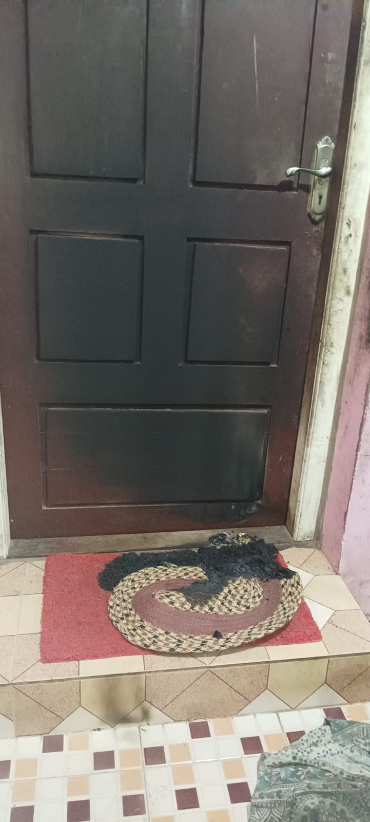 സംഭവ സമയത്ത് ടിന്റുവും രണ്ടു കുട്ടികളും അച്ഛനും അമ്മയും മാത്രമായിരുന്നു വീട്ടിൽ. ഉറക്കത്തിലായിരുന്ന ഇവർ ശബ്ദം കേട്ട് ഉണർന്നു നോക്കുമ്പോൾ ഹെൽമറ്റും റെയിൻ കോട്ടും ധരിച്ച് രണ്ടുപേർ വീടിന് പുറകുവശത്ത് തീയിടുന്നതാണ് ശ്രദ്ധയിൽപ്പെട്ടത്. ഫ്ലോർമാറ്റും കതകും കത്തിക്കാൻ ശ്രമിച്ചു. ടിന്റു ജി വിജയൻ ബിജെപി സ്ഥാനാർത്ഥിയായി മത്സരിക്കുകയാണ്.