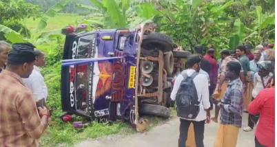 വെഞ്ഞാറമൂട്: വാമനപുരത്ത് സ്കൂൾ ബസ് വയലിലേക്ക് മറിഞ്ഞു. അപകടത്തിൽ 11 കുട്ടികൾക്ക് നിസാര പരിക്കേറ്റു. പരപ്പാറ നോബിൾ സ്കൂളിന്റെ ബസാണ് മറിഞ്ഞത്. ബസിൽ 15 കുട്ടികൾ ഉണ്ടായിരുന്നു. വെഞ്ഞാറമൂട് പൊലീസ് സ്ഥലത്തെത്തി രക്ഷാപ്രവർത്തനം നടത്തി. കുട്ടികളുടെ പരിക്കുകൾ ഗുരുതരമല്ലെന്ന് വെഞ്ഞാറമൂട് പൊലീസ് അറിയിച്ചു. പരിക്കേറ്റ കുട്ടികളെ വാമനപുരം പിഎച്ച്സിയിൽ പ്രവേശിപ്പിച്ചു. വണ്ടി തിരിക്കാനായി പിന്നോട്ട് എടുത്തപ്പോഴാണ് അപകടം സംഭവിച്ചത്.