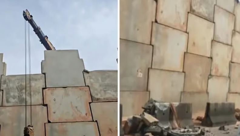 ഒന്നരമീറ്റര്‍ നീളവും വീതിയുമുള്ള കോണ്‍ക്രീറ്റ് സ്ലാബുകളാണ് ഇന്റര്‍ലോക്ക് രീതിയില്‍ അടുക്കിയാണ് മതില്‍ നിര്‍മിക്കുന്നത്. ഈ സ്ലാബുകളെ ക്രെയിന്‍ ഉപയോഗിച്ച് മുകളിലേക്ക് കയറ്റുന്നതിനിടെ ക്രെയിനുമായി ബന്ധിപ്പിച്ച കയര്‍ പൊട്ടുകയായിരുന്നു. അപകട സമയത്ത് റോഡില്‍ വാഹനങ്ങളോ ആളുകളോ ഉണ്ടായിരുന്നില്ല. അതിനാല്‍ വലിയ അപകടമാണ് ഒഴിവായത്.