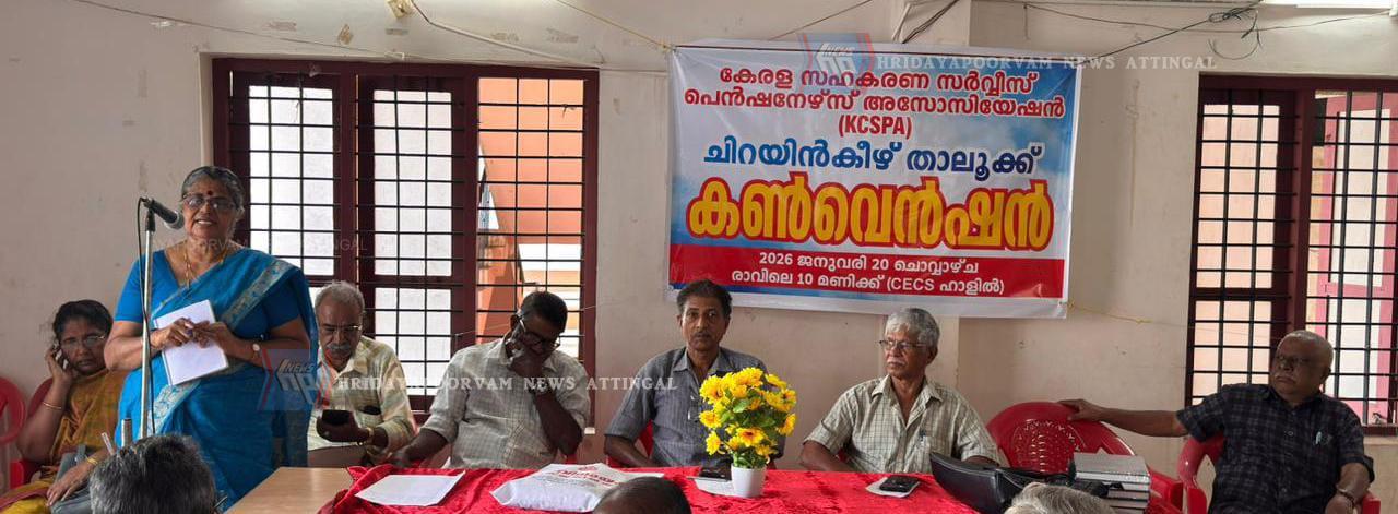 ദക്ഷിണമേഖല വാഹന പ്രചരണ ജാഥയ്ക്ക് ഫെബ്രുവരി 4 രാവിലെ ആറ്റിങ്ങൽ കച്ചേരി നടയിൽ വൻപിച്ച വരവേൽപ്പ് നൽകാൻ കേരള കോ- ഒപ്പറേ റ്റീവ് സർവീസ് പെൻഷനേഴ്സ് അസോസിയേഷൻ ചിറയിൻകീഴ് താലൂക്ക് കൺവെൻഷൻ തീരുമാനിച്ചു.
