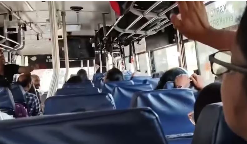 ബസില്‍ കുടുംബസമേതം സഞ്ചരിച്ച പത്തനംതിട്ട സ്വദേശിനി രശ്മി ആർ ശേഖറാണ് പ്രതിഷേധവുമായി ആദ്യമെത്തിയത്. പിന്നാലെ ബസിലെ മറ്റു ചില യാത്രക്കാരും പിന്തുണച്ചു. എന്നാൽ കുറ്റവിമുക്തനായ സാഹചര്യത്തില്‍ ദിലീപ് ചിത്രം വയ്ക്കുന്നതില്‍ തെറ്റില്ലെന്ന് അഭിപ്രായപ്പെട്ടവരും ബസിലുണ്ടായിരുന്നു. ബസ് യാത്ര പുറപ്പെട്ട വേളയില്‍ത്തന്നെ ദിലീപ് നായകനായ ‘പറക്കുംതളിക’ എന്ന സിനിമ പ്രദര്‍ശിപ്പിച്ചു. ഇതോടെ ഈ വഷളന്റെ സിനിമയാണല്ലോ പ്രദര്‍ശിപ്പിക്കുന്നതെന്ന് രശ്മിയുടെ മകന്‍ അഭിപ്രായപ്പെട്ടു. ഇതോടെ രശ്മി കണ്ടക്ടറോട് പറഞ്ഞ് സിനിമ ഒഴിവാക്കാനോ അല്ലെങ്കില്‍ മറ്റേതെങ്കിലും സിനിമ പ്രദര്‍ശിപ്പിക്കാനോ ആവശ്യപ്പെട്ടു.