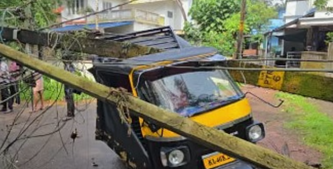 ഓടിക്കൊണ്ടിരിക്കുകയായിരുന്ന ഓട്ടോറിക്ഷയ്ക്ക് മുകളിലേക്ക് ഇലക്ട്രിക് പോസ്റ്റ് വീണു. പന്തല്ലൂര്‍ സ്വദേശി സൈമന്റെ ഓട്ടോറിക്ഷയ്ക്ക് മുകളിലേക്കാണ് ഇലക്ട്രിക് പോസ്റ്റ് വീണത്. സംഭവത്തില്‍ ആര്‍ക്കും പരിക്കില്ല.