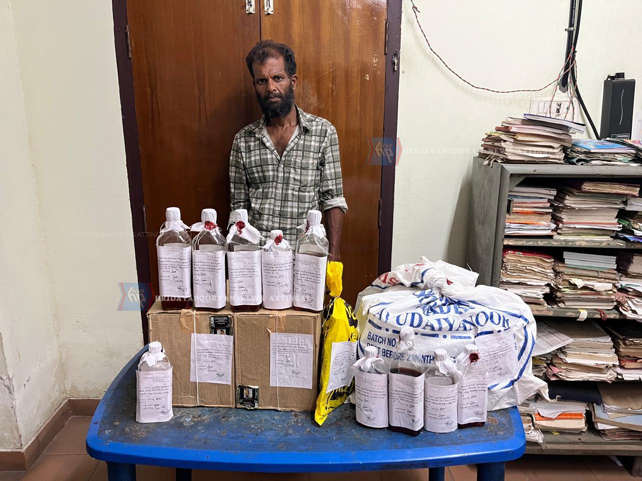 ചിറയിൻകീഴ് അഴൂരിൽ ബാബു (44) എന്ന ആളെയാണ് ആറ്റിങ്ങൽ എക്സൈസ് പിടികൂടി അറസ്റ്റ് ചെയ്തത്. കൊറോണ കാലഘട്ടത്തിൽ വാറ്റുചാരായം വില്പന നടത്തിയതിനു ഇയാളെ ആലപ്പുഴ ജില്ലയിൽ വച്ച് മുൻപ് പോലീസ് പിടികൂടി റിമാൻഡ് ചെയ്തിരുന്നു.