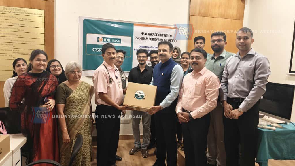 തിരുവനന്തപുരം: ഐഡിബിഐ ബാങ്കിന്റെ കോർപ്പറേറ്റ് സോഷ്യൽ റെസ്പോൺസിബിലിറ്റി (CSR) പദ്ധതിയുടെ ഭാഗമായി ഹോപ്പ് സ്കീം പ്രകാരം തിരുവനന്തപുരം ഗവ. മെഡിക്കൽ കോളേജിലെ ജനറൽ മെഡിസിൻ വിഭാഗത്തിന് 3 വി.പി.എ.പി മെഷീനുകൾ കൈമാറി.