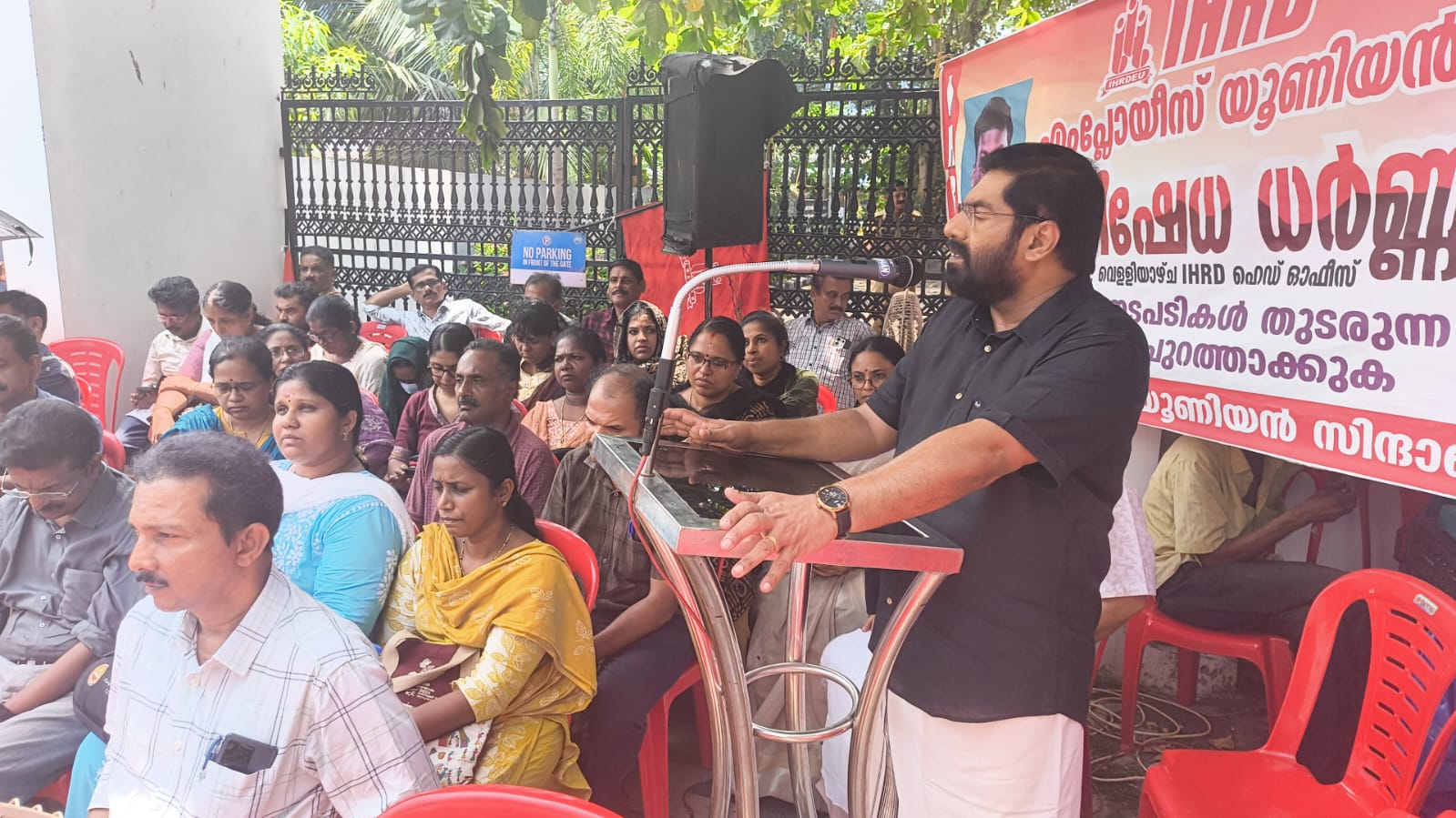 ഐ. എച്ച്.ആർ.ഡി. ഡയറക്ടർ ഇൻ ചാർജിൻ്റെ ജീവനക്കാർക്കെതിരായ ദ്രോഹനടപടികളിൽ പ്രതിഷേധിച്ച് അദ്ദേഹത്തെ തൽസ്ഥാനത്ത് നിന്ന് നീക്കം ചെയ്യണമെന്നാവശ്യപ്പെട്ടുകൊണ്ട് ഐ .എച്ച്. ആർ. ഡി. എംപ്ലോയീസ് യൂണിയൻ നേതൃത്വത്തിൽ ചാക്കയിലെ ഹെഡ് ക്വാർട്ടേഴ്സിന് മുന്നിൽ നടന്ന ഉപരോധ സമരം CPI (M) ജില്ലാ കമ്മറ്റി അംഗം അഡ്വ: എസ്. പി. ദീപക് ഉദ്ഘാടനം ചെയ്തു.