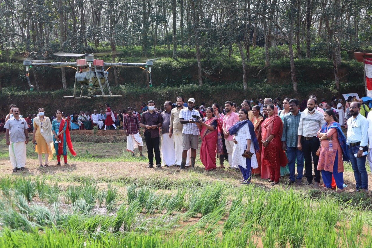 ഡ്രോൺപറത്തലിന്റെ ഉദ്ഘാടനം ഒ എസ് അംബിക എംഎൽഎ നിർവ്വഹിച്ചു. പഞ്ചായത്ത് പ്രസിഡന്റ് ഡി സ്മിത അധ്യക്ഷയായി. പദ്ധതിയുടെ ഭാഗമായി സൂക്ഷമൂലകങ്ങൾ പാടത്ത് ഡ്രോണുകളിലൂടെ സ്പ്രേചെയ്യുകയാണ് ചെയ്യുന്നത്. ഇതുവഴി നെൽച്ചെടികൾക്ക് വളരെ എളുപ്പത്തിൽ മൂലകങ്ങളെ വലിച്ചെടുക്കാനും അതുവഴി മെച്ചപ്പെട്ട വിളവും ലഭിക്കും. നാനോ യൂറിയയും കേരളാ കാർഷിക സർവ്വകലാശാല വികസിപ്പിച്ചെടുത്ത സമ്പൂർണ എന്ന സൂക്ഷ്മ മൂലകക്കൂട്ടും കൃഷി എൻജിനീയറിംഗ് വിഭാഗത്തിന്റെ നേതൃത്വത്തിലാണ് ഡ്രോണുകൾ പറത്തി പാടത്ത് തളിക്കുന്നത്.
