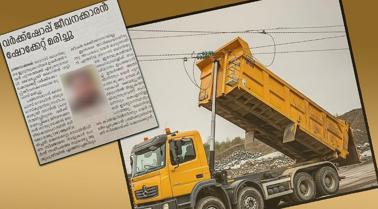 ടിപ്പിംഗ് മെക്കാനിസം ഘടിപ്പിച്ച വാഹനം ഇലക്ടിക് ലൈനിന് കീഴില് നിര്ത്തിയിട്ട് ടയര് മാറ്റാന് ശ്രമിക്കവെ മെക്കാനിക് ഷോക്കേറ്റ് മരിച്ചു. ഒരു ചെറിയ അശ്രദ്ധ കൊണ്ട് സംഭവിച്ച മരണം.