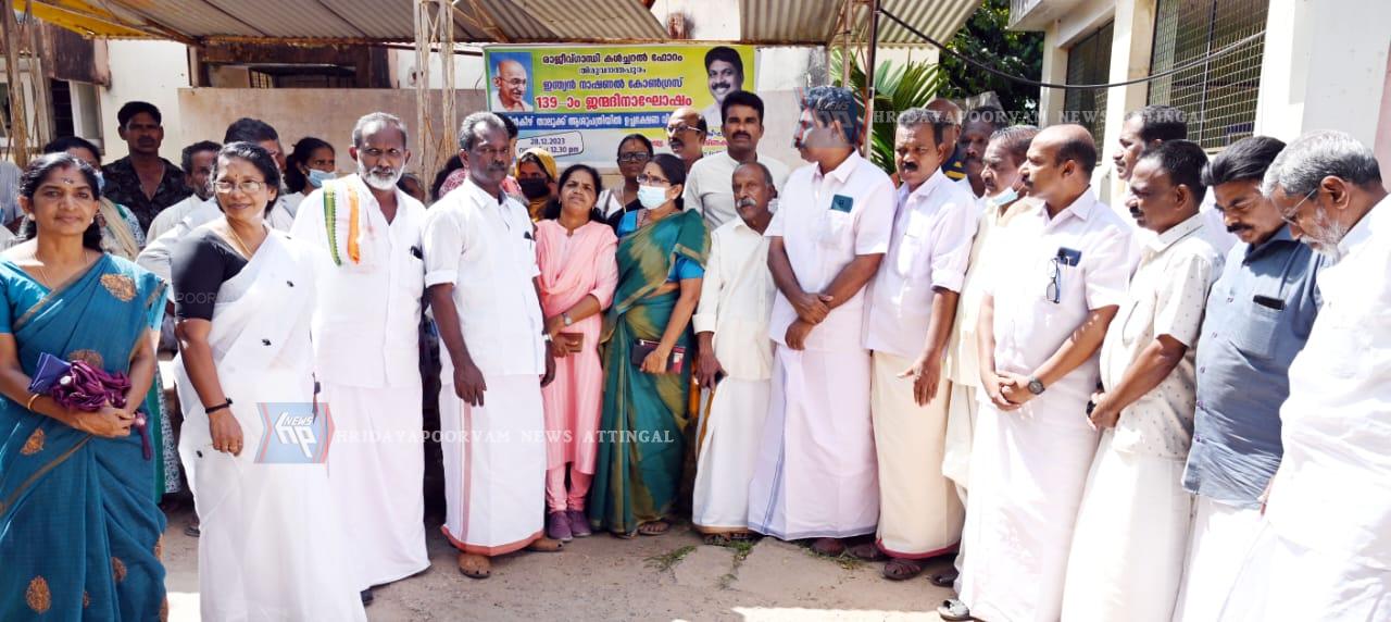 ഇന്ത്യന്‍ നാഷണല്‍ കോണ്‍ഗ്രസ്സിന്റെ 139-ാം ജന്മദിനത്തില്‍ രാജീവ് ഗാന്ധി കള്‍ച്ചറല്‍ ഫോറത്തിന്റെ ആഭിമുഖ്യത്തില്‍ ചിറയിന്‍കീഴ്‌ താലൂക്ക് ആശുപത്രിയില്‍ രോഗികള്‍ക്കും, കൂട്ടിരുപ്പുകാര്‍ക്കും ഉച്ചഭക്ഷണം വിതരണം ചെയ്തു. ഫോറം പ്രസിഡന്റ് അഡ്വ. എസ് കൃഷ്ണകുമാര്‍ വിതരണോദ്ഘാടനം നിര്‍വഹിച്ചു. രാജ്യത്തിന്റെ ജനാധിപത്യ മതേതര മൂല്യങ്ങള്‍ക്കും, ബഹുസ്വരതക്കും ഭീഷണി നേരിടുന്ന ഈ അവസരത്തില്‍ കോണ്‍ഗ്രസ് എന്ന പ്രസ്ഥാനം ഉയര്‍ത്തിക്കാട്ടിയ മൂല്യങ്ങള്‍ കാത്തു സൂക്ഷിക്കാന്‍ ഓരോ പൗരനും ബാധ്യതയുണ്ടെന്ന്‌ അദ്ദേഹം പറഞ്ഞു.