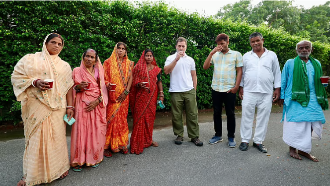 ഡല്‍ഹി: പ്രത്യേക തീവ്ര പുനഃപരിശോധനയെ തുടര്‍ന്ന് ‘മരിച്ചുപോയവര്‍’ എന്ന് കാണിച്ച് കരട് വോട്ടര്‍ പട്ടികയില്‍ നിന്ന് പേര് ഒഴിവാക്കപ്പെട്ടവരോടൊപ്പം ചായകുടിച്ച് പ്രതിപക്ഷ നേതാവ് രാഹുല്‍ ഗാന്ധി. ബിഹാറില്‍ നിന്നുള്ള ഏഴംഗ സംഘവുമായി ബുധനാഴ്ചയാണ് രാഹുല്‍ കൂടിക്കാഴ്ച നടത്തിയത്. മുതിര്‍ന്ന ആര്‍ജെഡി നേതാവും രാജ്യസഭാ എംപിയുമായ സഞ്ജയ് യാദവിനൊപ്പം രാഹുലിനെ അദ്ദേഹത്തിന്റെ വസതിയിലെത്തിയാണ് ഇവര്‍ കണ്ടത്.