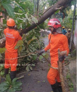 ആറ്റിങ്ങൽ: കുഴിമുക്കിൽ സ്വകാര്യവ്യക്തിയുടെ പുരയിടത്തിലെ തേക്ക് മരം ഇലക്ട്രിക് ലൈനിന് മുകളിലൂടെ റോഡിന് കുറുകേ മറ്റൊരു വീടിന് മുകളിൽ വീണു. ആളപായമില്ല. ആറ്റിങ്ങൽ ഫയർ & റസ്ക്യൂ ടീം ഗ്രേഡ് അസ്സി: സ്റ്റേഷൻ ഓഫീസർ സി.ആർ.ചന്ദ്രമോഹൻ്റെ നേതൃത്വത്തിൽ ഫയർ ഓഫീസർ ജിഷ്ണു, മുഹമ്മദ്സാഗർ,വിഷ്ണു എം സി നായർ, ഫയർ ഓഫീസർ ഡ്രൈവർ മനോജ് ഹോംഗാഡ് പ്രജീവ് എന്നിവരാണ് മരം മുറിച്ച് മാറ്റി ഗതാഗതം പുനസ്ഥാപിച്ചത്.