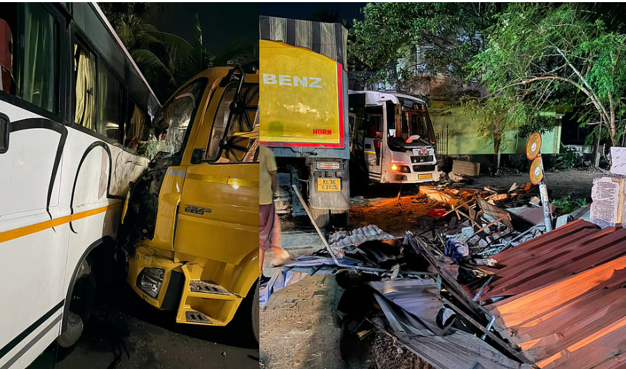 ഗുരുവായൂരിൽ ശബരിമല തീർത്ഥാടകർ സഞ്ചരിച്ച മിനി ബസ് ടോറസ് ലോറിയിൽ ഇടിച്ചു; 15 പേർക്ക് പരിക്ക്