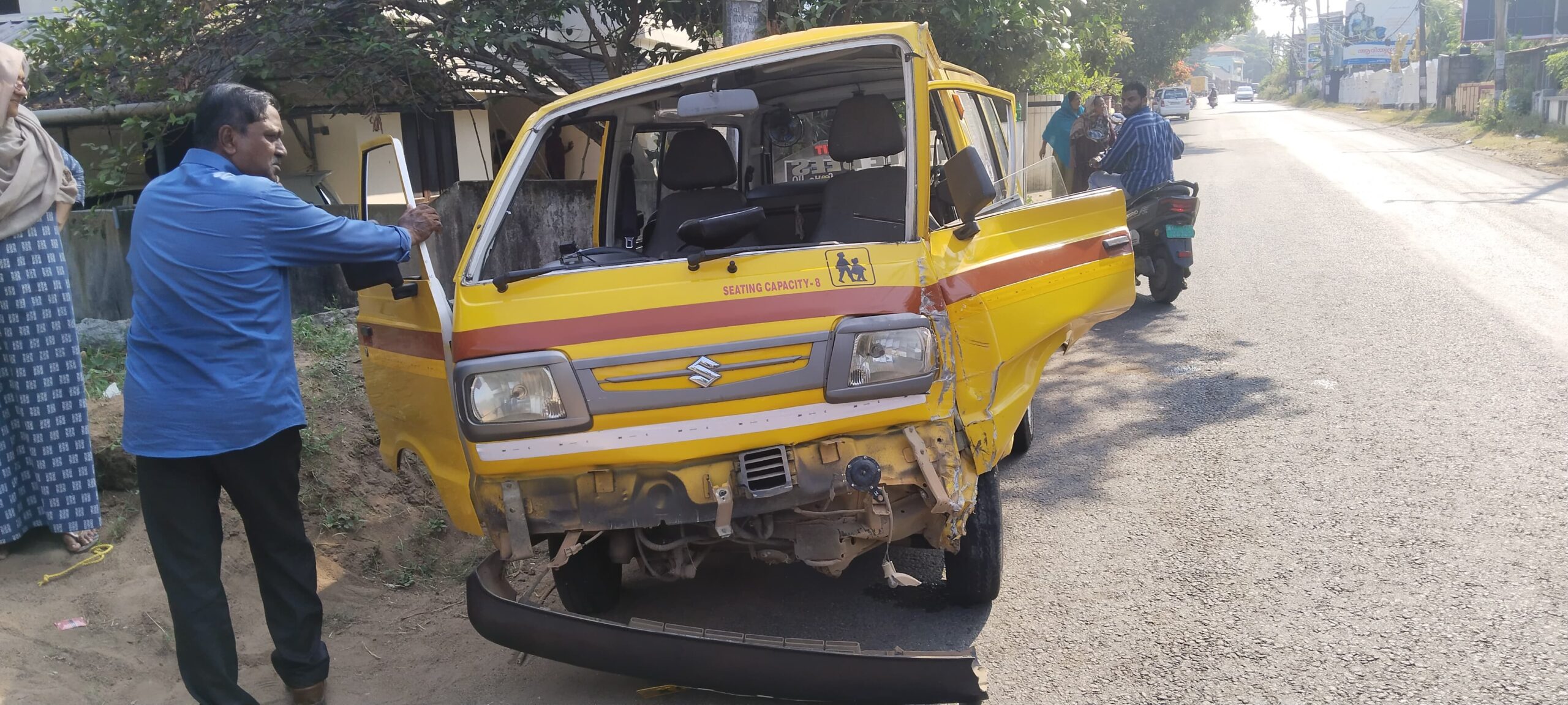 കടയ്ക്കാവൂർ: തെരുവുനായ കുറുകെ ചാടി നഴ്സറി സ്കൂളിലെ വിദ്യാർത്ഥികളുമായി വന്ന വണ്ടി നിയന്ത്രണം തെറ്റി വൈദ്യുത തൂണിലിടിച്ചു. മണനാക്ക് പാണന്റെ മുക്കിന് സമീപം വെള്ളിയാഴ്ച ഉച്ചയ്ക്ക് മൂന്നു മണിയോടെയാണ് സംഭവം. അപകടത്തിൽ ആർക്കും പരിക്കില്ല. ആറ്റിങ്ങലിലെ സ്വകാര്യ നഴ്സറി സ്കൂളിലെ വണ്ടിയാണ് അപകടത്തിൽ പെട്ടത്. സ്കൂൾ വിട്ട് കുട്ടികളുമായി മണനാക്കിൽ നിന്നും കടയ്ക്കാവൂർ ഭാഗത്തേയ്ക്ക് വരികയായിരുന്ന വണ്ടിക്ക് കുറുകെ പാണന്റെ മുക്ക് ജംഗ്ഷന് സമീപത്ത് വച്ച് തെരുവുനായ കുറുകെ ചാടുകയായിരുന്നു. മറ്റ് കുട്ടികളെ വീട്ടിലാക്കിയ ശേഷം നിലയ്ക്കാമുക്കിലുള്ള മൂന്ന് കുട്ടികളെ വീട്ടിലെത്തിക്കുവാൻ വരുന്ന വഴിയാണ് അപകടം സംഭവിച്ചത്. അപകടത്തിൽ വൈദ്യുത തൂണും വണ്ടിയുടെ മുൻഭാഗവും പൂർണമായും തകർന്നു.