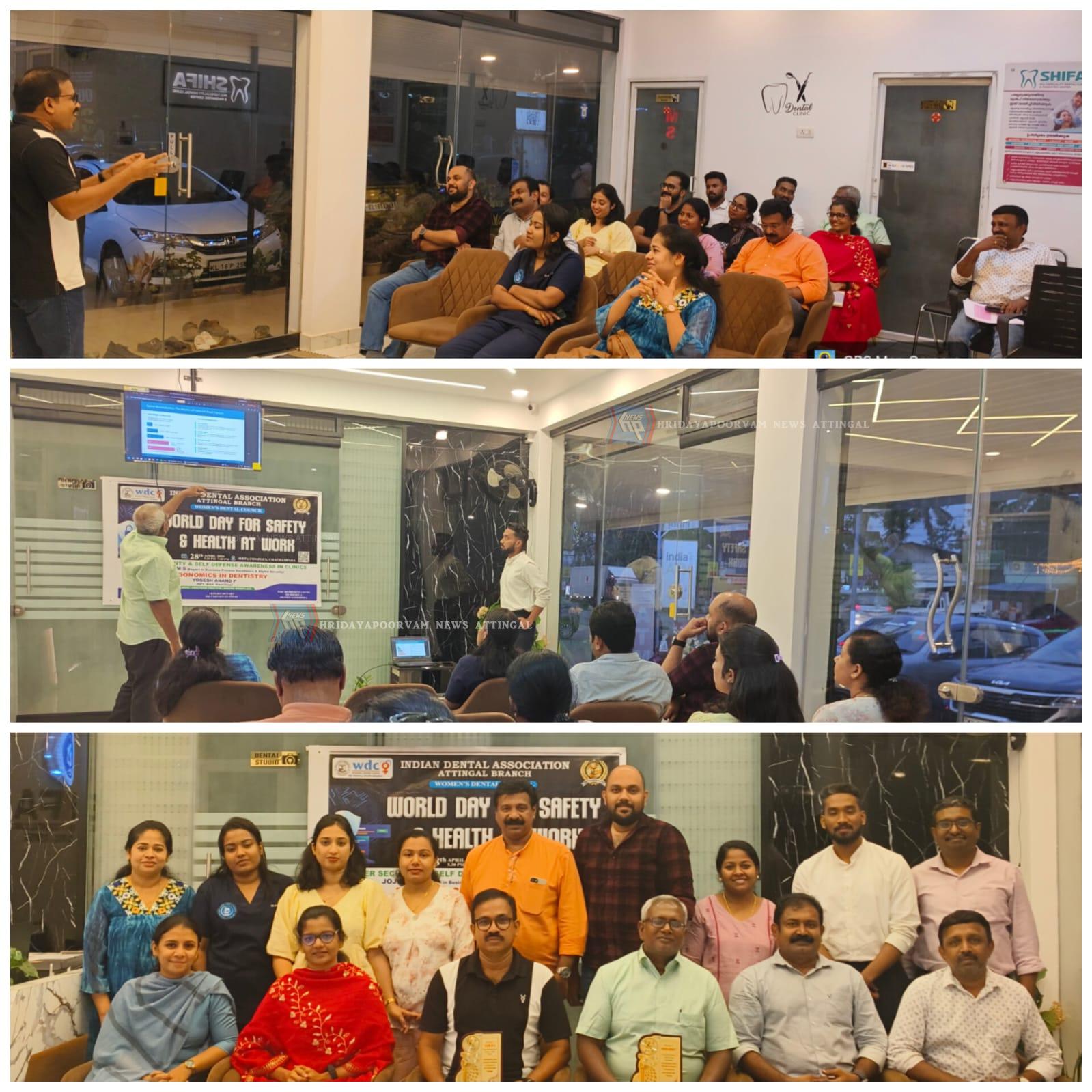 ആറ്റിങ്ങൽ: ഇന്ത്യൻ ഡെന്റൽ അസോസിയേഷൻ ആറ്റിങ്ങൽ ബ്രാഞ്ചിന്റെ ആഭിമുഖ്യത്തിൽ വേൾഡ് ഡേ ഫോർ സേഫ്റ്റി & ഹെൽത്ത് അറ്റ് വർക്ക് എന്ന വിഷയത്തിൽ സെമിനാർ സംഘടിപ്പിച്ചു. ചാത്തമ്പറ ഷിഫാ കോംപ്ലക്സിൽ വച്ച് ഡബ്ലിയു ഡി സി റെപ്രസന്ററ്റീവ്സ് ആയ ഡോക്ടർ പ്രിയ ലക്ഷ്മി, ഡോക്ടർ ഷെറിൻ എന്നിവരുടെ നേതൃത്വത്തിലായിരുന്നു ക്ലാസുകൾ നടന്നത്.