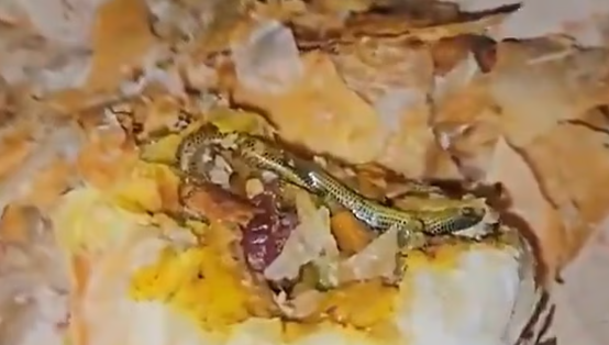 മഹബൂബ്നഗര് ജില്ലയിലാണ് സംഭവം. പ്രദേശത്തെ ബേക്കറിയില് നിന്ന് വാങ്ങിയ കറി പഫ്സിനുള്ളില് നിന്ന് ചത്ത പാമ്പിനെ കണ്ടെത്തി എന്നാണ് പരാതിയില് പറയുന്നത്. ജാഡ്ചര്ല മുനിസിപ്പാലിറ്റിയിലെ അയ്യങ്കാര് ബേക്കറിയില് നിന്ന് യുവതി ഒരു മുട്ട പഫ്സും ഒരു കറി പഫ്സുമാണ് വാങ്ങിയത്. വീട്ടിലെത്തി കുട്ടികളോടൊപ്പം കഴിക്കാന് കറി പഫ്സ് തുറന്നപ്പോഴാണ് പാമ്പിനെ കണ്ടെത്തിയത് എന്ന് പരാതിയില് പറയുന്നു.