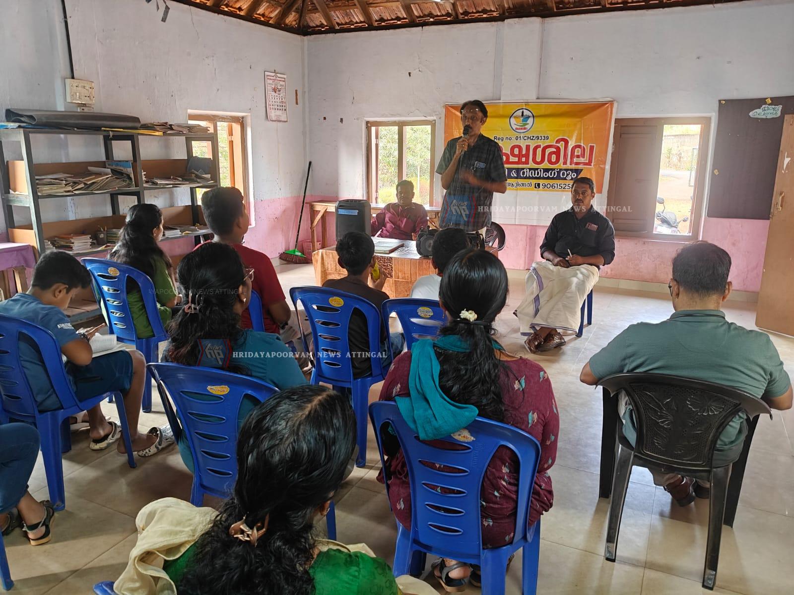 സാഹിത്യകാരനായ സന്തോഷ് ആറ്റിങ്ങൽ പുസ്തക അവതരണം നടത്തി. ലൈബ്രറി പ്രസിഡൻറ് ജയകുമാർ സെക്രട്ടറി രഞ്ജിത്ത് കുമാർ, ശ്യാം കൃഷ്ണ,ശ്രീജിത്ത് നോവലിസ്റ്റ് സജിത്ത് ലാൽ നന്ദനം, പി.സി നാരായണൻ, നന്ദു നാരായൺ, നിമിഷ, സുജകമല, സുമ എന്നിവർ ചർച്ചയിൽ പങ്കെടുത്തു. ലൈബ്രറിയുടെ ബാലവേദി, വനിതാവേദി