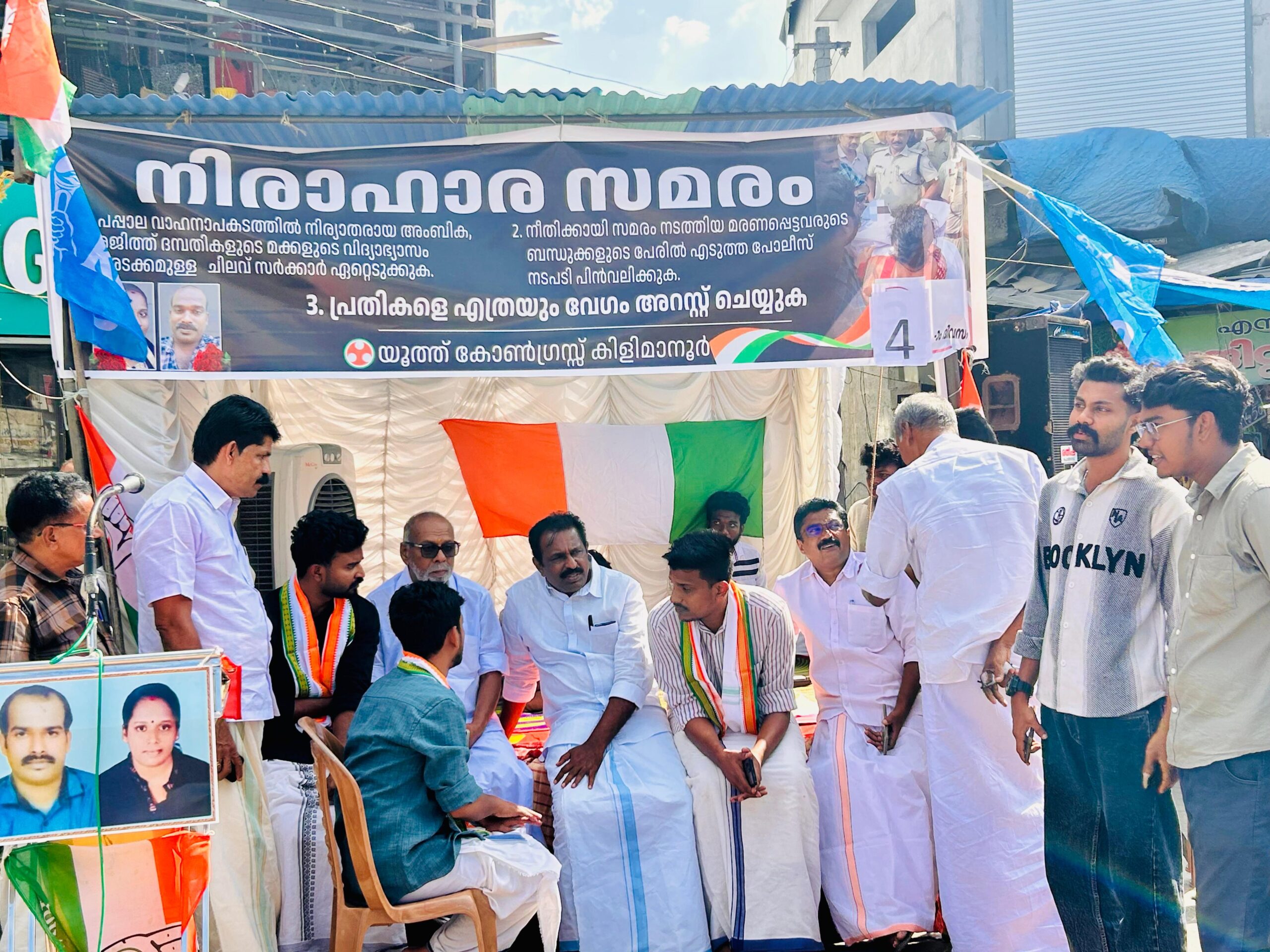 കിളിമാനൂർ പാപ്പാല വാഹന അപകടത്തിലെ പോലീസ് വീഴ്ചയും ചികിത്സ പിഴവും ചൂണ്ടി കാട്ടി യൂത്ത് കോൺഗ്രസ് സംസ്ഥാന സെക്രട്ടറി ജി.ജി.ഗിരികൃഷ്ണൻ, കെഎസ്യു സംസ്ഥാന ജനറൽ സെക്രട്ടറി ആദേഷ് സുധർമ്മൻ ബ്ലോക്ക് പഞ്ചായത്ത് അംഗം കണ്ണൻ പുല്ലയിൽ എന്നിവരുടെ നേതൃത്വത്തിൽ നടക്കുന്ന അനിശ്ചിതകാല നിരാഹാര സമരം നാലാം ദിവസത്തിൽകെപിസിസി വൈസ് പ്രസിഡന്റ് എം.വിൻസെന്റ് എംഎൽഎ പങ്കാളിയായി.
