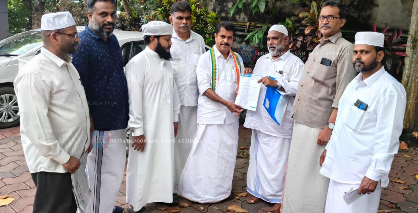 കല്ലമ്പലം: നിലവിലെ വഖ്ഫ് നിയമം മുഴുവനായും മാറ്റിമറിക്കുന്ന രീതിയിൽ പാർലിമെന്റിൽ അവതരിപ്പിക്കപ്പെട്ട വഖ്ഫ് ഭേദഗതി ബില്ലിൽ നിന്ന് കേന്ദ്ര സർക്കാർ പിന്മാറണമെന്നാവശ്യപ്പെട്ട് വഖ്ഫ് ആക്ടിനെ സംബന്ധിച്ചുള്ള നിവേദനം കേരള മുസ്ലിം ജമാഅത്ത് ആറ്റിങ്ങൽ പാർലമെൻ്റ് മെമ്പർ അടൂർ പ്രകാശിന് നൽകി. ജില്ലാ പ്രസിഡൻറ് ഹാഷിം ഹാജി, ജില്ലാ സെക്രട്ടറി മുഹമ്മദ് റാഫി, നിജാസ് ആലംകോട്, മുഹമ്മദ് റാഫി എസ്, നൗഫൽ മദനി, സകീർ കല്ലമ്പലം, ജാബിർ അസ്ഹരി എന്നിവർ സംബന്ധിച്ചു.