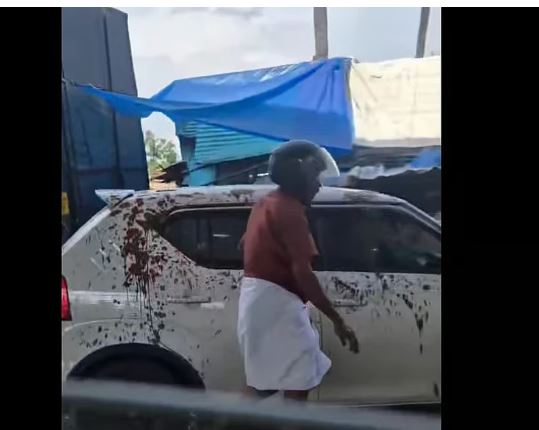 ഉയരപ്പാത നിര്മ്മാണം നടക്കുന്ന അരൂര്- തുറവൂര് പാതയില് ചന്തിരൂര് ഭാഗത്ത് ഞായറാഴ്ച ഉച്ചയ്ക്കാണ് സംഭവം. നിലവിലെ ദേശീയപാതയില് പടിഞ്ഞാറുവശത്തുകൂടി സ്കൂട്ടറില് സഞ്ചരിച്ചയാളുടെ ശരീരത്തില് ഓവര്ടേക്ക് ചെയ്ത കാര് ചെളിവെള്ളം തെറിപ്പിക്കുകയായിരുന്നു. ചെളിയില് കുളിച്ച സ്കൂട്ടര് യാത്രക്കാരന് കാറിന് പിന്നാലെ വിട്ടു. ഒടുവില് കാറിനെ മറികടന്ന് സ്കൂട്ടര് വട്ടംവെച്ചു. ഇതോടെ കാര് പാതയോരത്തേയ്ക്ക് ഒതുക്കി. തുടര്ന്ന് സ്കൂട്ടര് യാത്രക്കാരന് ഇറങ്ങിവന്ന് റോഡിലെ ചെളിവെള്ളം കൈകൊണ്ട് കോരി കാറിന്റെ മുകള്ഭാഗത്തടക്കം ഒഴിച്ചു. ഹെല്മറ്റ് ധരിച്ചിരുന്നതിനാല് ഇയാളുടെ മുഖം വ്യക്തമല്ല.