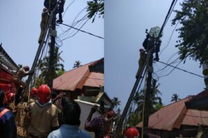 അഞ്ചുതെങ്ങ്: അഞ്ചുതെങ്ങ് കോട്ടയ്ക്ക് സമീപം അറ്റകുറ്റപ്പണികൾക്കിടെ ഇലക്ട്രിസിറ്റി കരാർതൊഴിലാളി പോസ്റ്റിനു മുകളിൽ കുരുങ്ങി. ഇന്ന് ഉച്ചയ്ക്ക് പന്ത്രണ്ടേകാലോടെ അഞ്ചുതെങ്ങ് കോട്ടയ്ക്കു സമീപം ഇലക്ട്രിസിറ്റി കരാർതൊഴിലാളി പോസ്റ്റിനു മുകളിൽ കുരുങ്ങിയത്. പതിനൊന്ന് കെ.വി പോസ്റ്റിനു മുകളിൽ പണി ചെയ്യവേ രാജേഷ് (36), ആറ്റിങ്ങൽ കൊല്ലമ്പുഴ നളിനി സദനത്തിൽ രാജേഷ് (36)ആണ് കടുത്ത ചൂടിനെത്തുടർന്ന് സൂര്യാഘാതം ഏറ്റ് ബോധരഹിതനായത്.